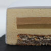 Kompozīcija: Lazdu riekstu biskvīts, bumbieru marmelāde, lazdu riekstu krēms, karameļu muss