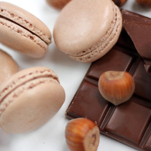 Macarons ar lazdu riekstu un piena šokolādes krēmu