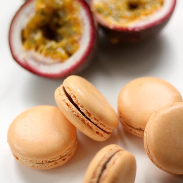 Macarons ar mango un marakujas krēmu