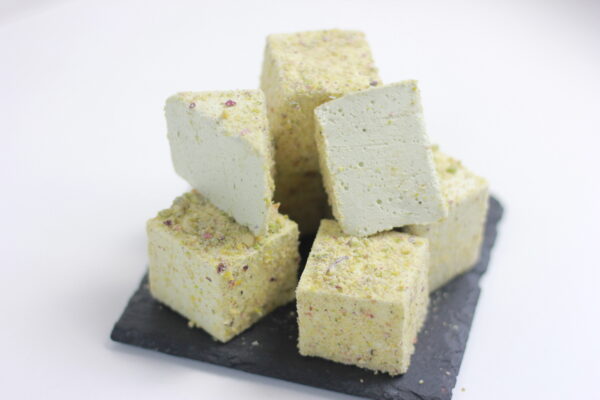Pēc pasūtījuma, SuflēSastāvs: cukurs, sviests, iebiezināts piens, olu baltums, glikozes sīrups, pistāciju pasta, pistācijas, kukurūzas ciete, agara pulveris, citronskābe